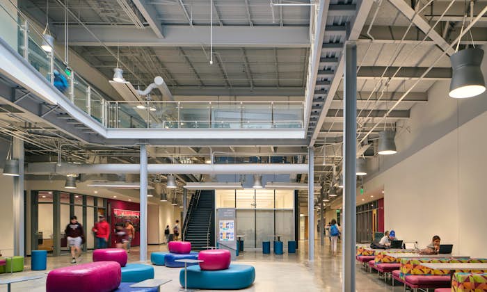 Phase 1 of ACC Highland transformed the 44-year-old building into a regional workforce center. Most of the original structure was saved and repurposed. Datum performed analysis of the existing framing for the new loads and provided remediation where needed. The design of Phase I features a central 2-story commons area highlighted by a large architecturally exposed cast-in-place social stair.
