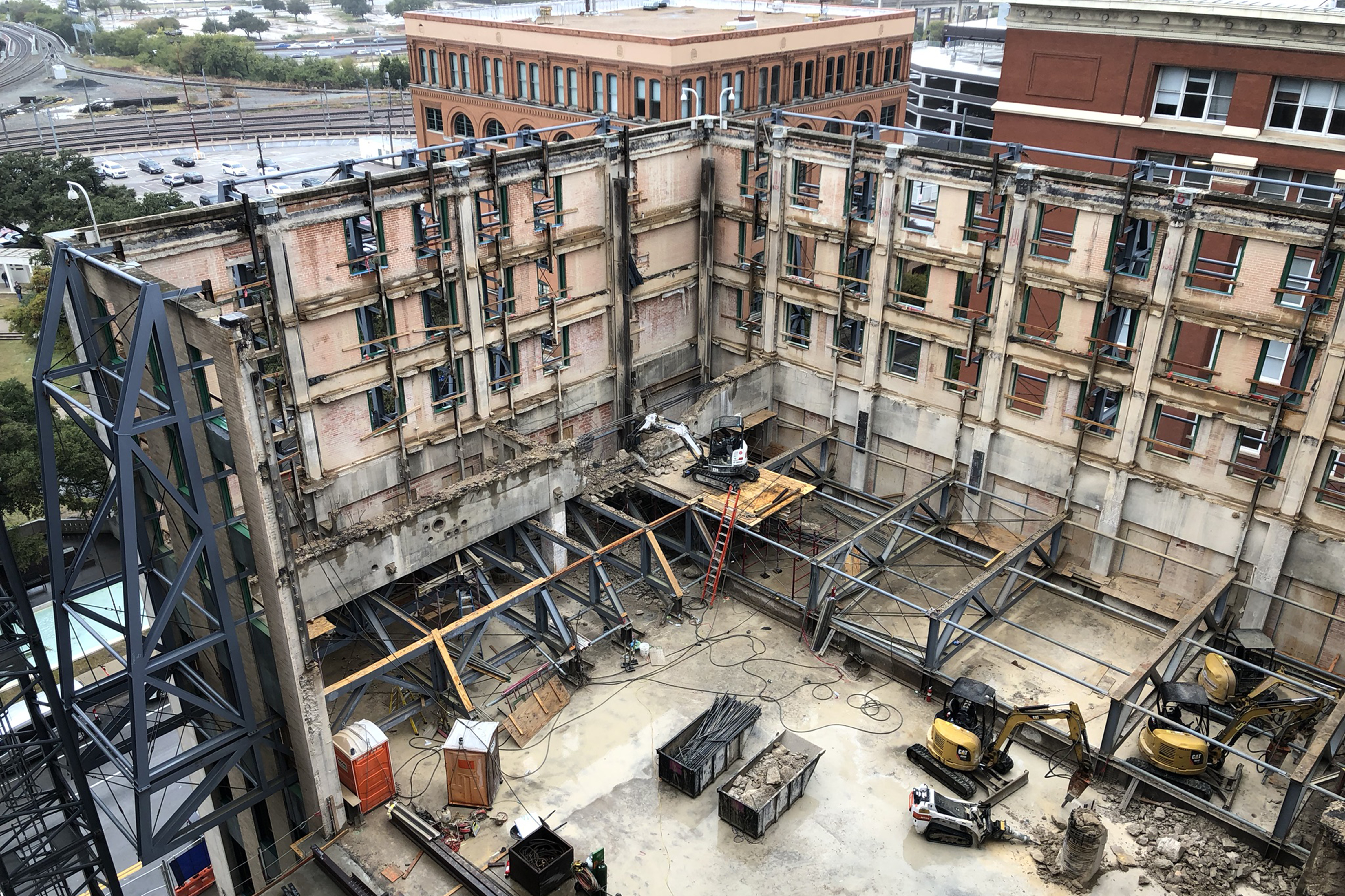 Renovation of the Dallas County Records Building was completed in 2022. This facility is composed of three approximately 7-story buildings built in 1917, 1927 and 1953. The original designs did not focus on a functional tie between the buildings. One of the buildings was a Criminal Courthouse where Jack Ruby was being tried when he died. This courtroom will remain as a historic area of the building. The jail cells existed in two of the buildings, which had to be removed. In one of the buildings, the jail cells generated low floor heights that could not be used in the adaptive reuse.