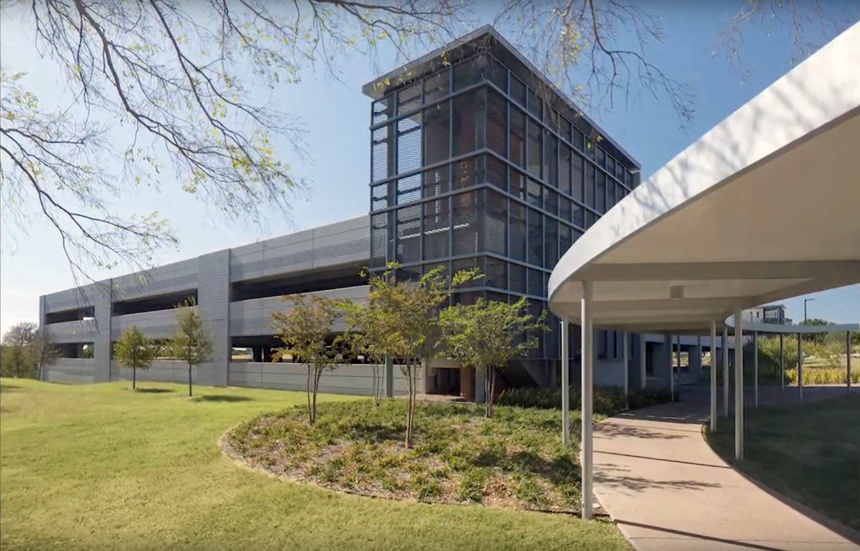 The new parking garage was constructed for a large telecom company at their new campus in Las Colinas. It is located on Hidden Ridge Road, which is quite a visible location, so the design was very important. The garage design compliments the aesthetics of the site conditions as well as being efficient and economical. The structure includes vertical cladding, different concrete mixes, and strategically placed screening. This open precast concept includes 144,000 sq. ft. and 337 precast pieces.